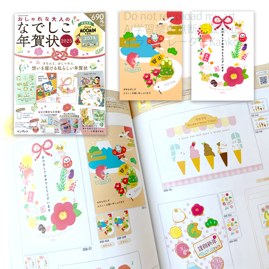 2024.12 おしゃれな大人のなでしこ年賀状イラストレーションを描きました。